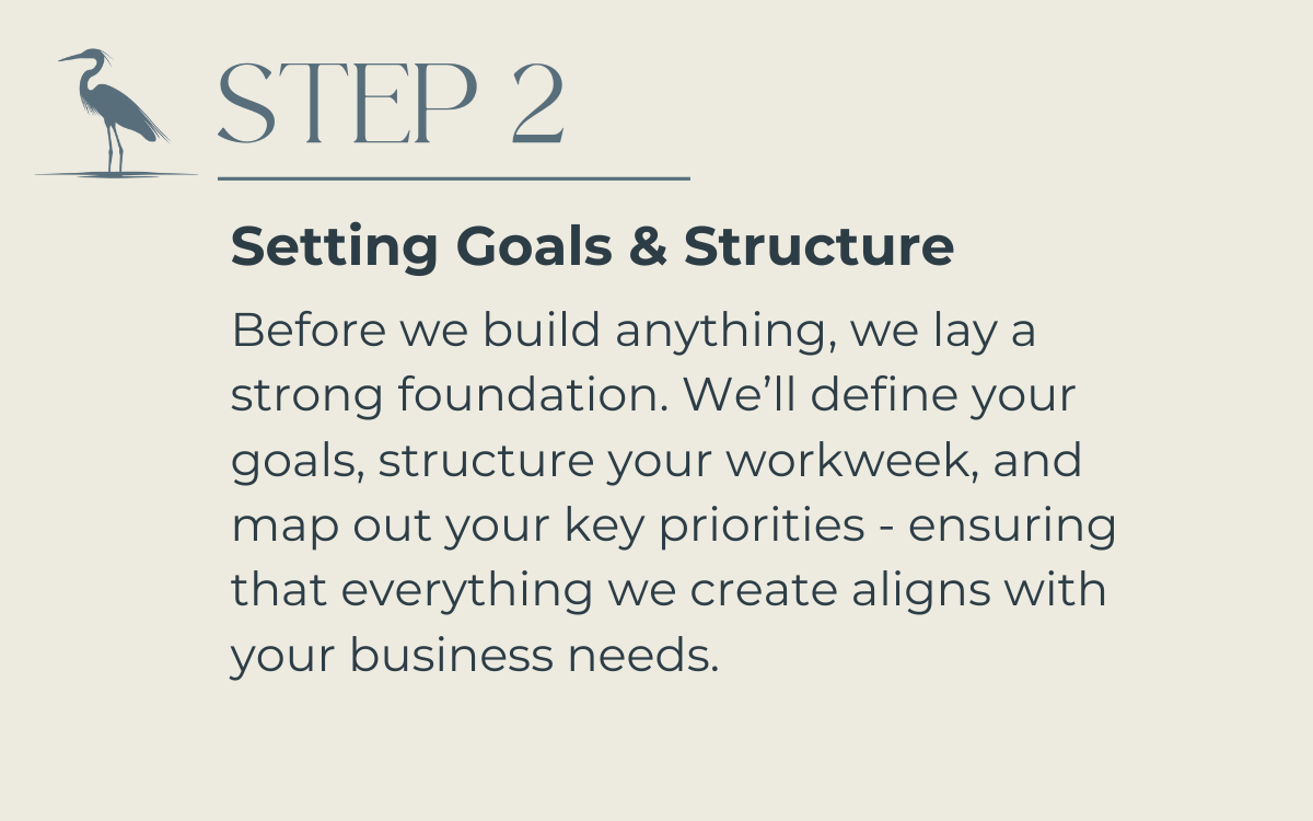 With my Simply Structured Method, we’ll start by defining your business goals and structuring your workweek so that every task has a place and a purpose. Then, I’ll create a customized digital task management system that streamlines your workflow—helping you stop reacting and start leading your business with confidence.