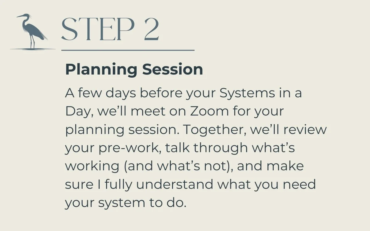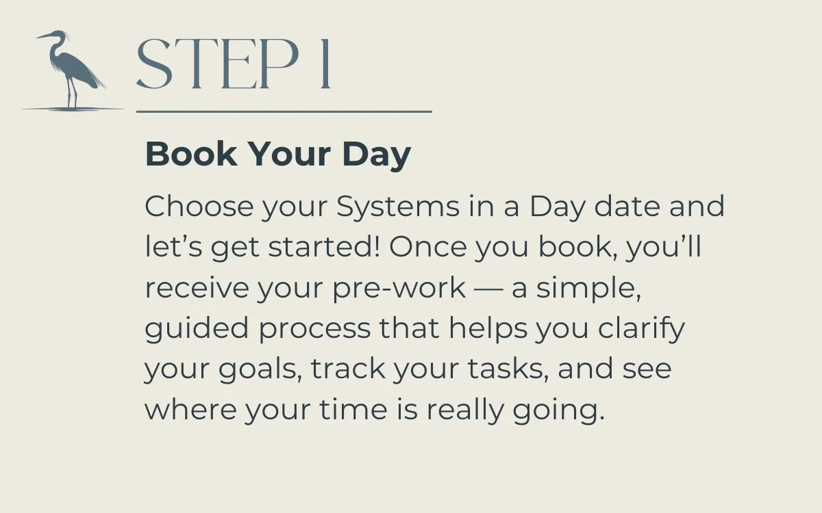 Book your free Systems Clarity Call to talk about your goals, what’s feeling overwhelming, and what’s slipping through the cracks so we can pinpoint where you need the most support and clarity moving forward.